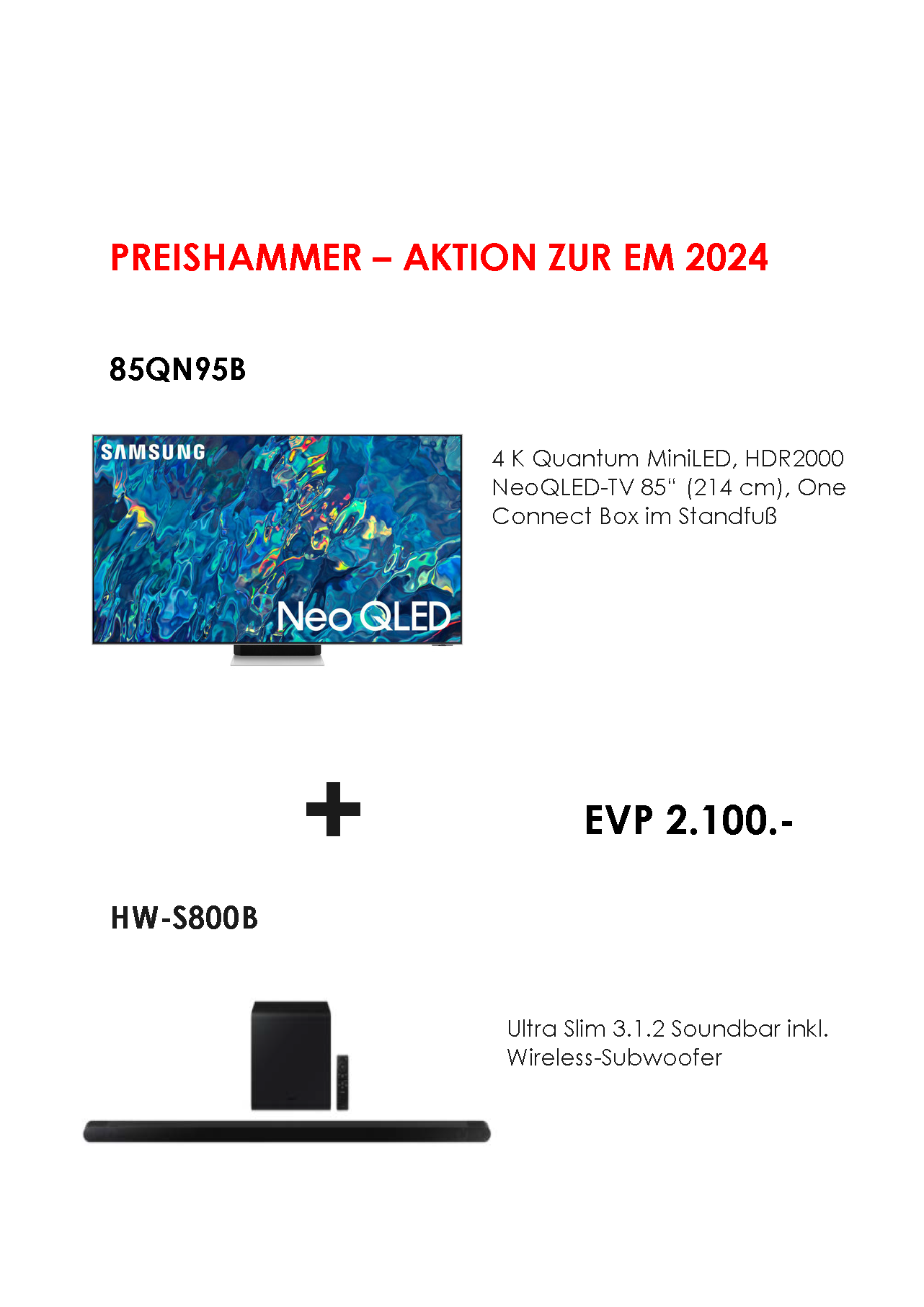 Jetzt gibt es den Samsung 85QN95B Fernseher inkl. Soundbar HW-S800B als Ausstellungsstück zum Preis von 2.100€