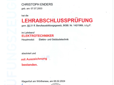 Wir gratulieren unseren Lehrling Christoph zur bestandenen LEHRABSCHLUSSPRÜFUNG mit "AUSZEICHNUNG" im Lehrberuf ELEKTROTECHNIKER.